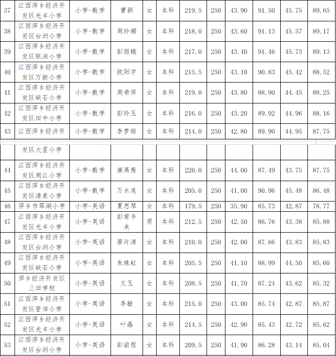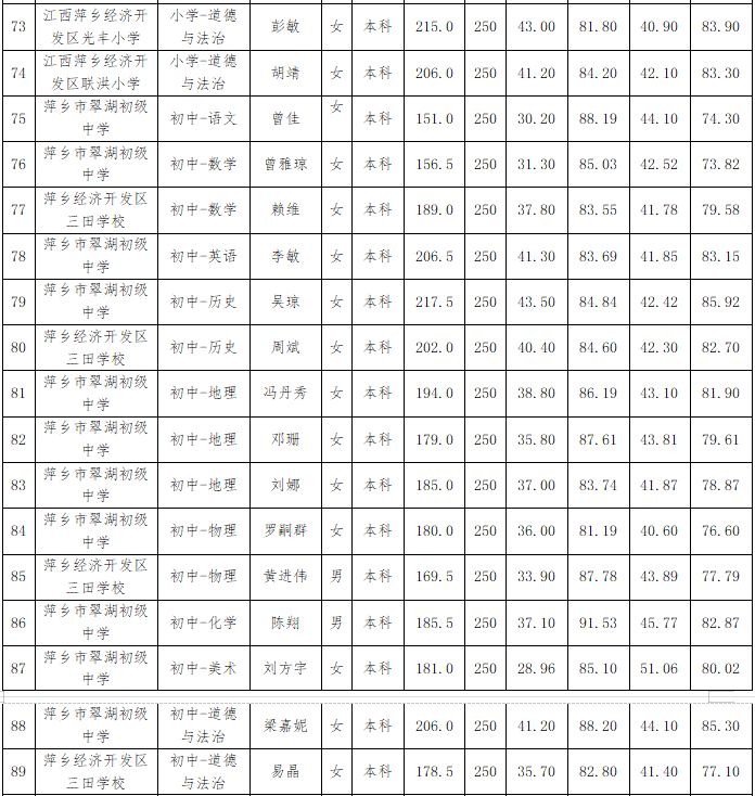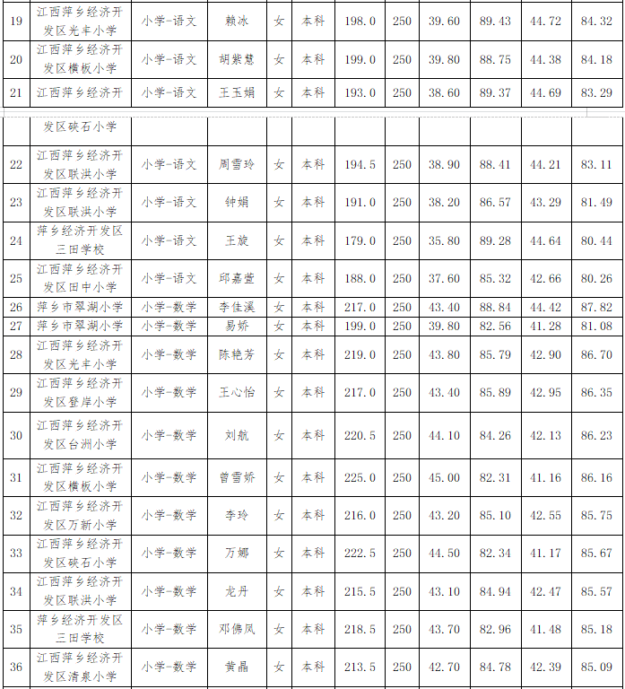 萍鄉(xiāng)經(jīng)濟(jì)技術(shù)開發(fā)區(qū)2022年省統(tǒng)招教師擬聘用人員名單公示