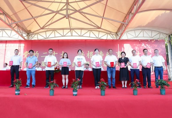 上栗中學(xué)黨總支副書記陳紹斌為縣優(yōu)秀黨務(wù)工作者和縣優(yōu)秀黨員頒獎。