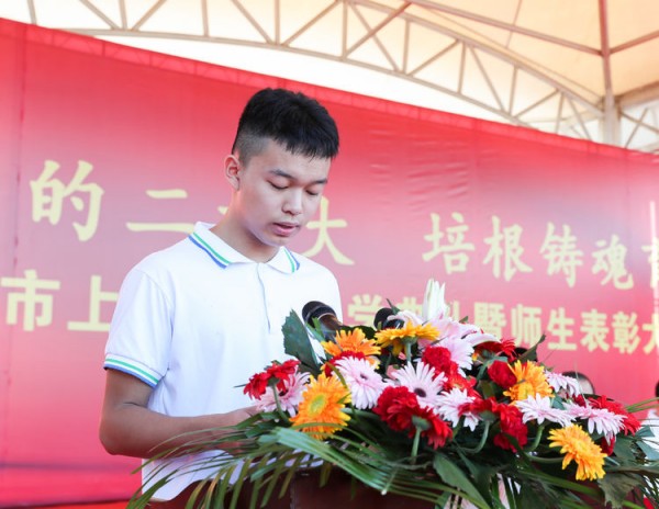 優(yōu)秀學(xué)生代表劉???3002班)發(fā)言。他說,作為新時代中國青年,要立遠(yuǎn)志,將黨和時代的囑咐謹(jǐn)記于心;要干實事,將對成功的追求化為點滴日常,與時偕行,砥礪前行。