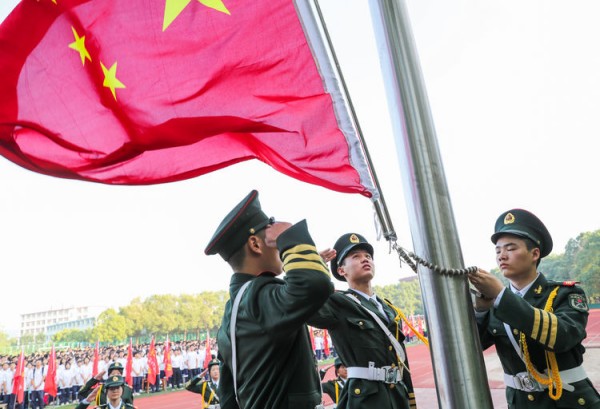 典禮在激昂的國歌聲和莊嚴(yán)的升旗儀式中正式拉開帷幕。旗手們朝氣蓬勃,英姿颯爽,邁著矯健步伐走向升旗臺,伴隨著雄壯嘹亮的《義勇軍進(jìn)行曲》,鮮艷的五星紅旗迎著初升的朝陽冉冉升起,迎風(fēng)飄揚。