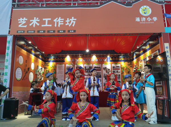 萍鄉(xiāng)市安源區(qū)通濟小學創(chuàng)設的葫蘆絲藝術課程,通過引領學生在葫蘆絲在演奏和裝飾葫蘆絲中了解葫蘆絲藝術起源、發(fā)展、種類等相關內(nèi)容,感受葫蘆絲獨特的民族藝術魅力和深厚的文化內(nèi)涵,提高動手實踐能力。此外,非遺文化“蓮花落”、話劇、陶笛、合唱、街舞等課程也是通濟的特色名片。