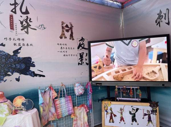 本次展示以青綠色系搭配為主,結合國風,描繪南正街上的自然景色與文化特色,將作品多樣立體呈現(xiàn),如:皮影戲、糖畫、南正街風景....展區(qū)現(xiàn)場小朋友們運用藝術語言,將手繪巧妙地融合為藝術作品并在老師的精心指導下,一個個作品在寶貝們的巧手下變成了一件件精美的藝術品。