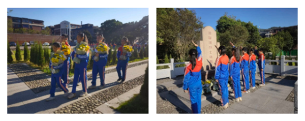 少先隊(duì)員代表向黃靜源烈士獻(xiàn)花
