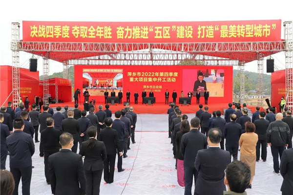 “我宣布,萍鄉(xiāng)市2022年第四季度重大項(xiàng)目集中開工?!鄙衔?0時(shí)許,隨著陳敏下達(dá)開工令,現(xiàn)場(chǎng)工程車輛鳴笛,吹響了“決戰(zhàn)四季度、奪取全年勝”的沖鋒號(hào),掀起了加快推進(jìn)項(xiàng)目建設(shè)的熱潮。