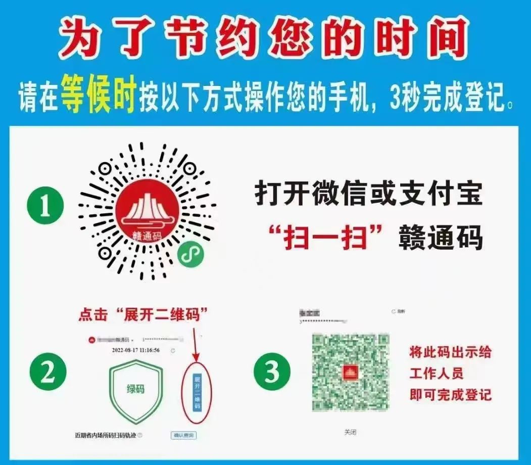 3、為提高核酸檢測效率和速度,請參加核酸檢測的居民提前申領(lǐng)“贛通碼”,縮短排隊時間,老人和小孩可由家人代領(lǐng)“贛通碼”。