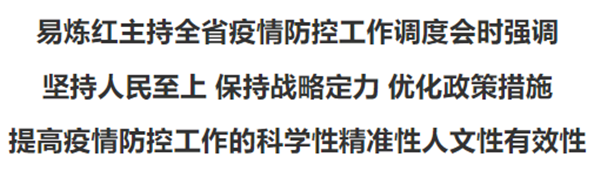 省委書記易煉紅調度全省疫情防控工作:堅持人民至上 保持戰(zhàn)略定力 優(yōu)化政策措施
