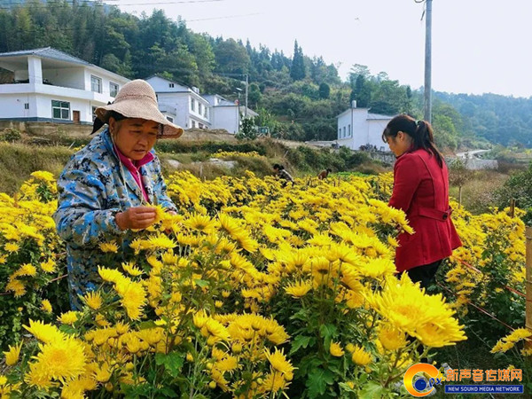 眼下,金絲皇菊進(jìn)入采收季,在南坑鎮(zhèn)窯下村皇菊產(chǎn)業(yè)基地,田野中黃燦燦一片,漫園盡披“黃金甲”。菊農(nóng)們徜徉在黃色的花海里,采擷金黃色的花朵,臉上洋溢著豐收的喜悅。