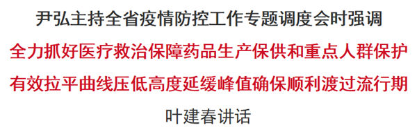 尹弘主持全省疫情防控工作調(diào)度會(huì):拉平曲線、壓低高度、延緩峰值 確保順利渡過(guò)流行期