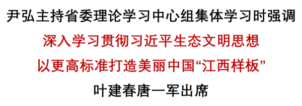 9月7日,省委書(shū)記尹弘主持2023年第11次省委理論學(xué)習(xí)中心組集體學(xué)習(xí)。他強(qiáng)調(diào),要深入貫徹習(xí)近平生態(tài)文明思想,全面落實(shí)習(xí)近平總書(shū)記在全國(guó)生態(tài)環(huán)境保護(hù)大會(huì)上的重要講話精神,縱深推進(jìn)國(guó)家生態(tài)文明試驗(yàn)區(qū)建設(shè),以更高標(biāo)準(zhǔn)打造美麗中國(guó)“江西樣板”。
