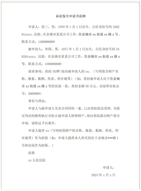 財(cái)產(chǎn)保全申請(qǐng)書(shū)模板