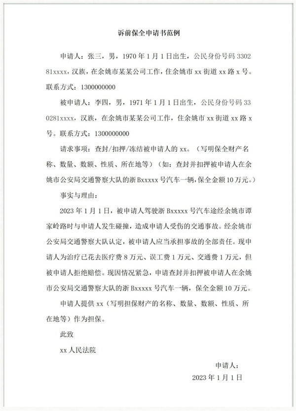1.申請(qǐng)保全人與被保全人的身份、送達(dá)地址、聯(lián)系方式。