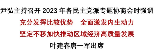 11月10日,省委書(shū)記尹弘主持召開(kāi)2023年各民主黨派專(zhuān)題協(xié)商會(huì)。他強(qiáng)調(diào),要深入貫徹落實(shí)習(xí)近平總書(shū)記考察江西重要講話精神,聚焦“走在前、勇?tīng)?zhēng)先、善作為”的目標(biāo)要求,堅(jiān)持搶位發(fā)展、錯(cuò)位發(fā)展、協(xié)同發(fā)展,充分發(fā)揮比較優(yōu)勢(shì),全面激發(fā)內(nèi)生動(dòng)力,堅(jiān)定不移加快推動(dòng)區(qū)域經(jīng)濟(jì)高質(zhì)量發(fā)展。