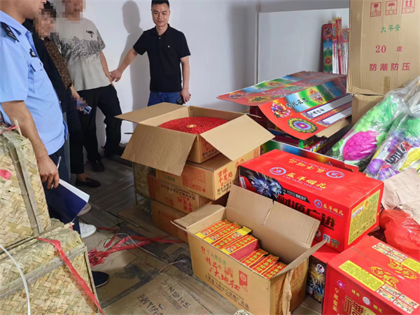 6月11日,源南派出所聯(lián)合源南鄉(xiāng)政府、消防等部門(mén)在轄區(qū)開(kāi)展安全檢查工作時(shí),發(fā)現(xiàn)一商店倉(cāng)庫(kù)內(nèi)非法儲(chǔ)存煙花爆竹,經(jīng)現(xiàn)場(chǎng)清點(diǎn),倉(cāng)庫(kù)內(nèi)共有非法儲(chǔ)存的各類煙花爆竹50余箱。