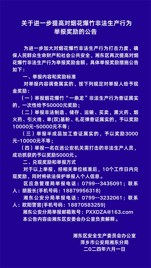 儲存、運(yùn)輸、銷售煙花爆竹均需要經(jīng)過相關(guān)審批或許可,未經(jīng)審批或許可私自儲存、運(yùn)輸、銷售煙花爆竹不僅存在較大風(fēng)險隱患,而且需要承擔(dān)法律責(zé)任。非法燃放煙花爆竹行為不僅擾民、污染環(huán)境,而且易給公共安全和公民人身財產(chǎn)安全帶來風(fēng)險。公安機(jī)關(guān)將依據(jù)《治安管理處罰法》《煙花爆竹安全管理?xiàng)l例》等法律法規(guī)依法予以查處,對于構(gòu)成犯罪的,將依法追究刑事責(zé)任。希望廣大市民,為了自己和他人的生命財產(chǎn)安全,不要非法儲存、運(yùn)輸、銷售和違法燃放煙花爆竹,發(fā)現(xiàn)違法線索可及時向公安機(jī)關(guān)舉報。法律法規(guī)鏈接