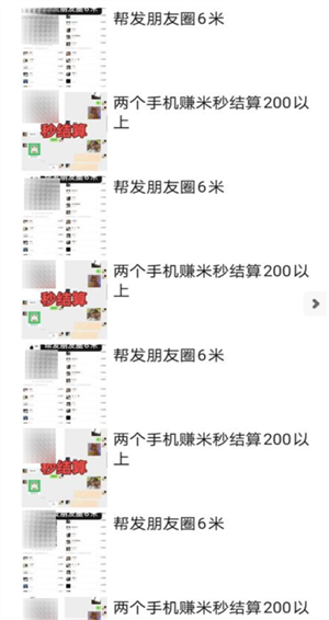 根據(jù)用戶投訴發(fā)現(xiàn),近期有不法分子以“兼職”為幌子,在朋友圈、微信群發(fā)布“幫發(fā)朋友圈換米”“閑置小號(hào)換零花錢”等相關(guān)內(nèi)容。提醒大家切勿參與!這些不法分子可能會(huì)指派你發(fā)布含有無(wú)資質(zhì)產(chǎn)品的廣告內(nèi)容(如虛假減肥產(chǎn)品宣傳)、招嫖類不良信息、欺詐引流類內(nèi)容(如宣稱刷單可獲雙倍返現(xiàn))等。