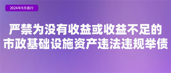 財(cái)政部等六部門聯(lián)合發(fā)布《市政基礎(chǔ)設(shè)施資產(chǎn)管理辦法(試行)》,自2024年9月1日起施行?!掇k法》提出,政府投資建設(shè)的市政基礎(chǔ)設(shè)施資產(chǎn)應(yīng)當(dāng)依法嚴(yán)格履行基本建設(shè)審批程序,落實(shí)資金來源,加強(qiáng)預(yù)算約束,防范政府債務(wù)風(fēng)險(xiǎn)。嚴(yán)禁為沒有收益或收益不足的市政基礎(chǔ)設(shè)施資產(chǎn)違法違規(guī)舉債,不得增加隱性債務(wù)。