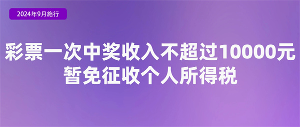 財(cái)政部、國家稅務(wù)總局等四部門聯(lián)合發(fā)布《關(guān)于彩票兌獎(jiǎng)與適用稅法有關(guān)口徑的公告》?!豆妗钒l(fā)布后,繼續(xù)執(zhí)行對彩票一次中獎(jiǎng)收入不超過10000元暫免征收個(gè)人所得稅的優(yōu)惠政策。《公告》明確,電腦彩票以同一人在同一期同一游戲中獲得的全部獎(jiǎng)金為一次中獎(jiǎng)收入,即開型彩票以一張彩票獎(jiǎng)金為一次中獎(jiǎng)收入。兌獎(jiǎng)金額超過3000元的,應(yīng)登記中獎(jiǎng)人相關(guān)實(shí)名信息和兌獎(jiǎng)信息,中獎(jiǎng)人應(yīng)主動(dòng)配合做好登記工作。《公告》自2024年9月1日起執(zhí)行,2024年9月1日前已銷售,仍在兌獎(jiǎng)有效期內(nèi)但尚未兌獎(jiǎng)的彩票,按《公告》規(guī)定執(zhí)行。