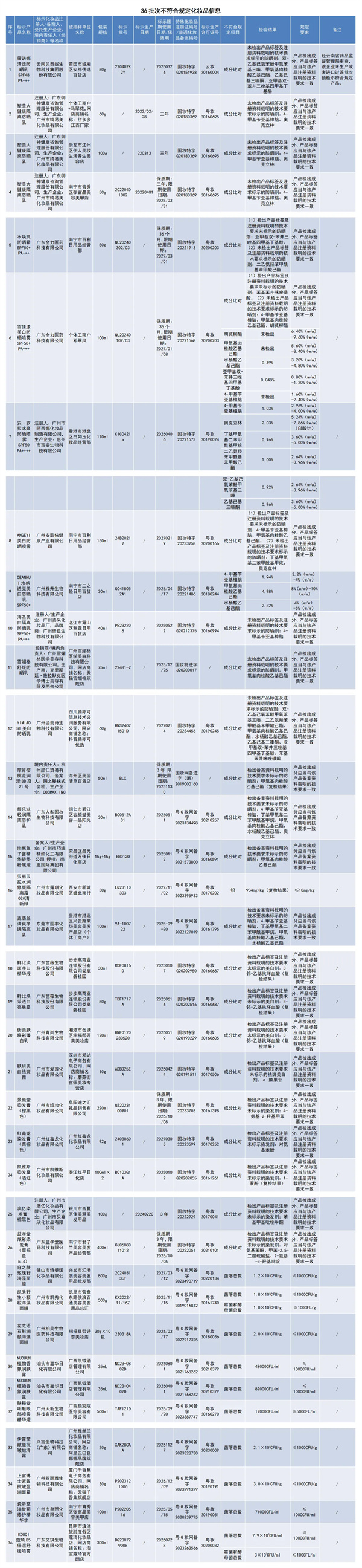 不合格項目涉及成分比對、鉛、菌落總數(shù)、甲氧基肉桂酸乙基己酯、二乙氨羥苯甲?;郊姿峒乎?、水楊酸乙基己酯、霉菌和酵母菌總數(shù)等。