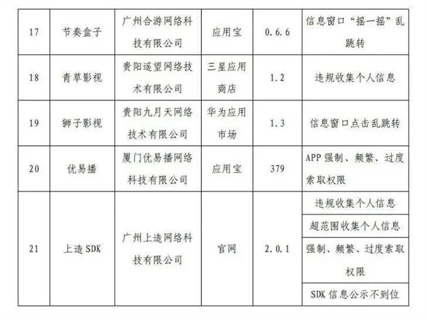 工業(yè)和信息化部高度重視用戶權(quán)益保護(hù)工作,依據(jù)《個(gè)人信息保護(hù)法》《網(wǎng)絡(luò)安全法》《電信條例》《電信和互聯(lián)網(wǎng)用戶個(gè)人信息保護(hù)規(guī)定》等法律法規(guī),持續(xù)整治APP侵害用戶權(quán)益的違規(guī)行為。近期,我部組織第三方檢測(cè)機(jī)構(gòu)進(jìn)行抽查,共發(fā)現(xiàn)21款A(yù)PP及SDK存在侵害用戶權(quán)益行為,現(xiàn)予以通報(bào)。