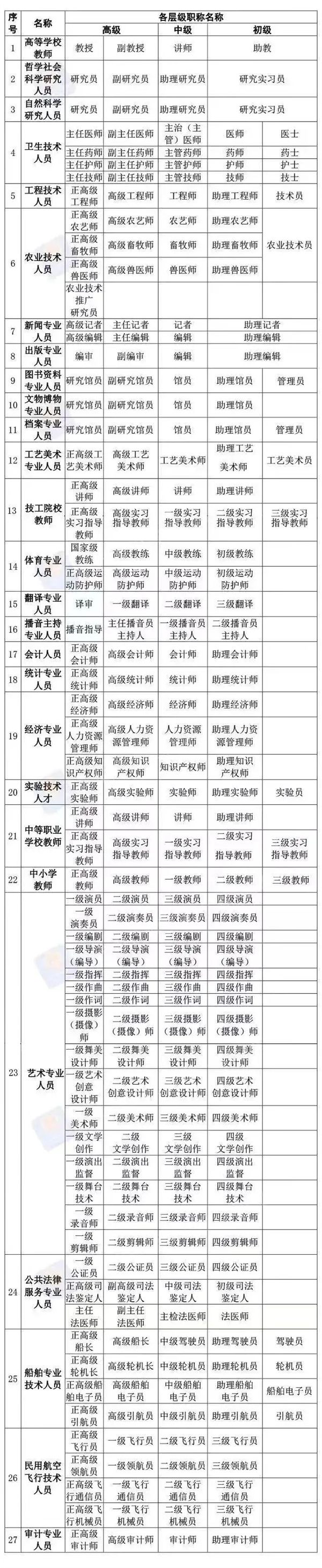 職稱評審結(jié)果一般分為高級、中級、初級三個層級,但具體到不同專業(yè),職稱名稱又有所不同。