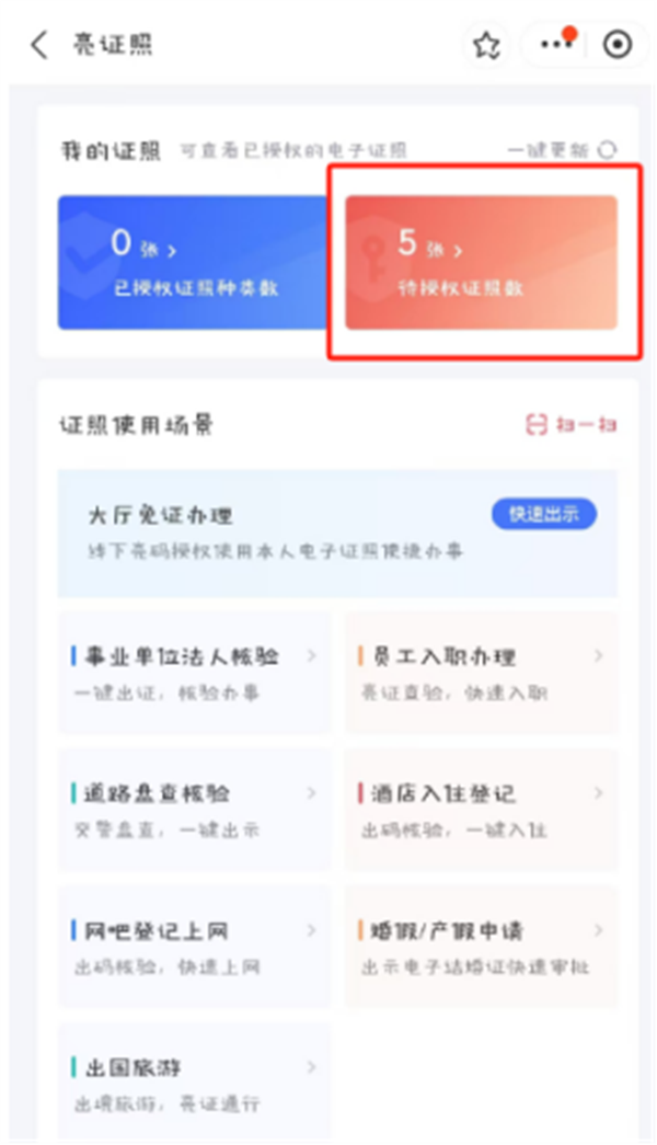 2.點(diǎn)擊“亮證照”,掃臉完成認(rèn)證。