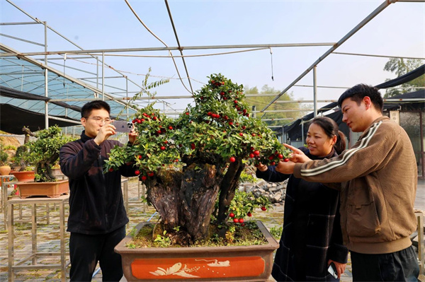 近年來,青山鎮(zhèn)結(jié)合各村實(shí)際和區(qū)位優(yōu)勢,深入推動(dòng)產(chǎn)業(yè)轉(zhuǎn)型發(fā)展,打造集農(nóng)業(yè)采摘、近郊旅游、研學(xué)素拓為一體的生態(tài)旅游示范帶,以“黨員+致富帶頭人+特色產(chǎn)業(yè)+農(nóng)戶”模式,將農(nóng)業(yè)產(chǎn)業(yè)“致富經(jīng)”輻射到當(dāng)?shù)財(cái)?shù)千群眾,打造了高枧村友鄰盆栽種植基地農(nóng)旅特色產(chǎn)業(yè),依托黨員與致富帶頭人“雙培養(yǎng)”模式,成立友鄰盆栽合作社,創(chuàng)新實(shí)行“1+1+4”服務(wù)機(jī)制,即每月盆景交流、黨員園藝師掛點(diǎn)四戶,提供全方位服務(wù),有效帶動(dòng)群眾增收,全力推進(jìn)鄉(xiāng)村振興。