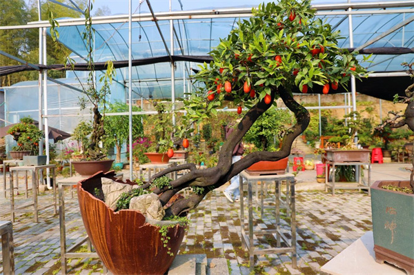 青翠的羅漢松、結(jié)果的金彈子、挺拔的香樟樹……走進(jìn)青山鎮(zhèn)高枧村友鄰盆栽種植基地內(nèi),一盆盆特色盆栽如同絢爛的調(diào)色盤,點(diǎn)綴在村道兩旁,繪制出一幅生機(jī)盎然的鄉(xiāng)村振興美麗畫卷。