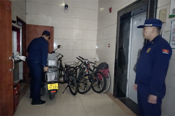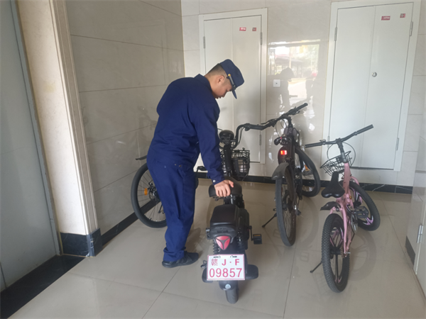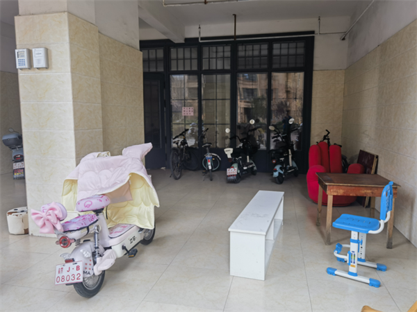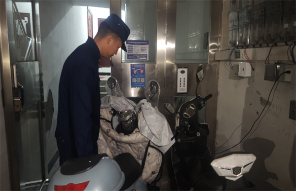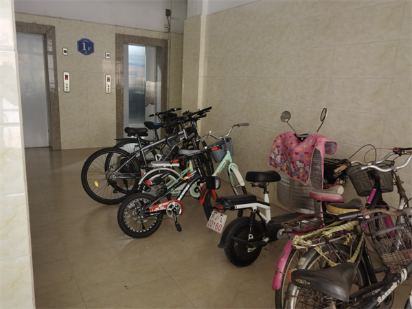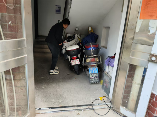 存在隱患:電動自行車違規(guī)停放、堵塞疏散通道