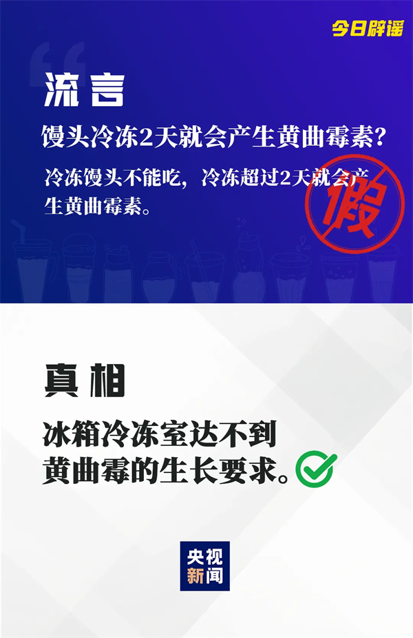 黃曲霉素需要在濕度80%至90%、溫度25℃至30℃的條件下產(chǎn)生,冰箱冷凍層產(chǎn)生黃曲霉素的可能性很低。只要饅頭在放入冰箱前未受污染,且冰箱內(nèi)也是干凈的,那么滋生黃曲霉的可能性就很小。