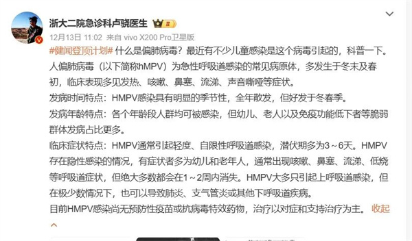 目前,還沒有針對HMPV感染的特效藥物和疫苗,以對癥支持治療為主。