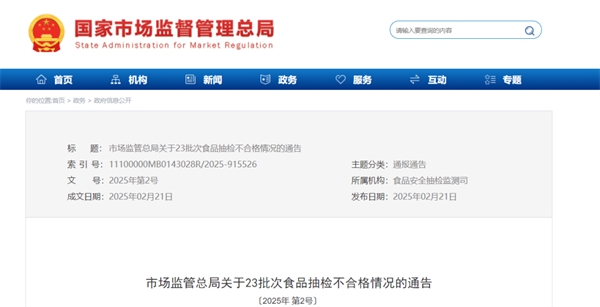 近期,市場監(jiān)管總局近期組織食品安全監(jiān)督抽檢1315批次樣品,檢出23批次樣品不合格。對抽檢發(fā)現(xiàn)的不合格食品,有關(guān)省級市場監(jiān)管部門已組織開展核查處置。監(jiān)督抽檢不合格食品具體情況如下: