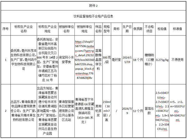(四)青海智驛服務(wù)區(qū)經(jīng)營管理有限公司日月山服務(wù)區(qū)北站銷售的、標(biāo)稱青海柴墾農(nóng)牧品牌運(yùn)營有限責(zé)任公司出品的、青海省天精本草生物科技有限公司生產(chǎn)的黑枸杞原漿,其中菌落總數(shù)不符合食品安全國家標(biāo)準(zhǔn)規(guī)定。