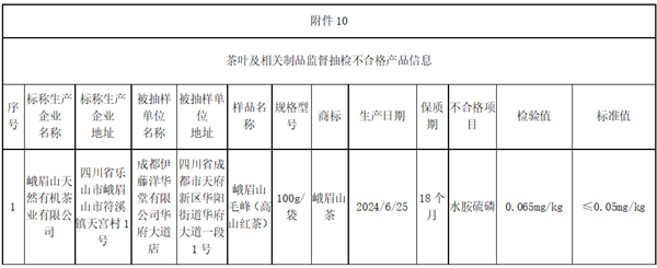 (一)四川省成都伊藤洋華堂有限公司華府大道店銷售的、標(biāo)稱四川省樂山市峨眉山天然有機(jī)茶業(yè)有限公司生產(chǎn)的峨眉山毛峰(高山紅茶),其中水胺硫磷殘留量不符合食品安全國家標(biāo)準(zhǔn)規(guī)定。