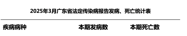 2025年3月廣東省法定傳染病報(bào)告發(fā)病、死亡統(tǒng)計(jì)表部分內(nèi)容截圖