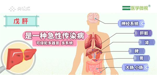 戊肝是由戊型肝炎病毒引起的一種急性病毒性肝炎,主要侵犯肝臟,也可以侵犯其他器官和系統(tǒng),如胃、脾、腎、大腸、小腸、神經(jīng)系統(tǒng)。