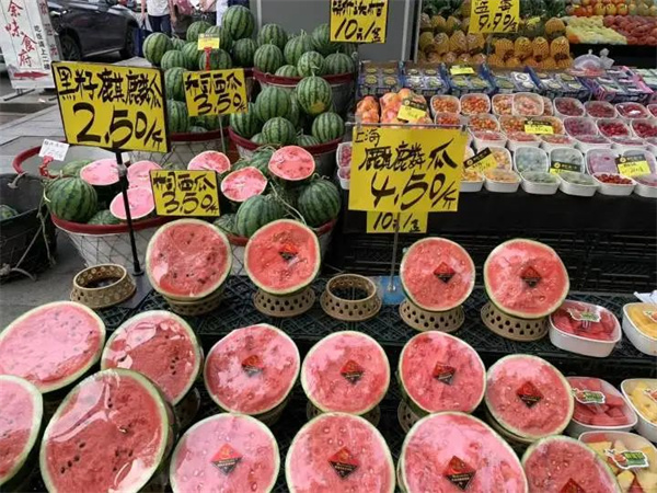 5月14日,喬司西瓜零售價(jià)格降至2.8元-3.5元一斤,江蘇鹽城麒麟瓜降至3.25元一斤,早春紅玉降至2元左右一斤。半個(gè)多月時(shí)間,杭州市場(chǎng)西瓜售價(jià)平均跌幅約50%。