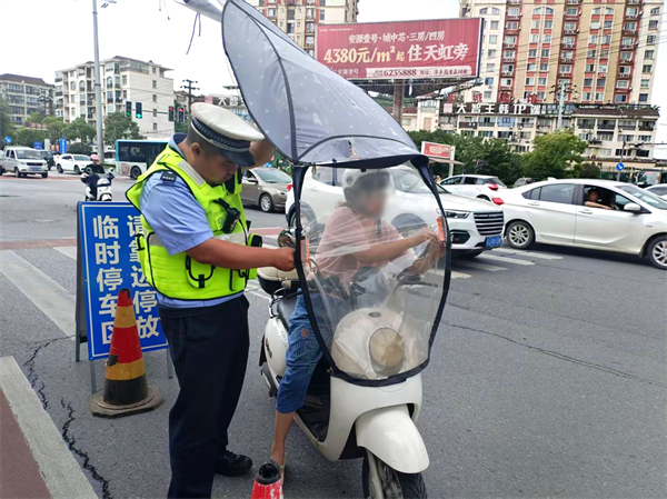 嚴查二輪車不佩戴安全頭盔、加裝晴雨傘、無牌無證、“飆車炸街”等交通違法行為,同時向駕乘人員告知其非法安裝遮雨棚(傘)、騎乘不佩戴安全頭盔等不文明交通行為存在的交通安全隱患和危害,提醒群眾駕駛摩托車、電動車要自覺佩戴安全頭盔,遵守交通法律法規(guī),做好自我防護為自己的生命負責。