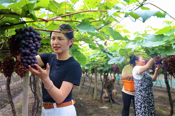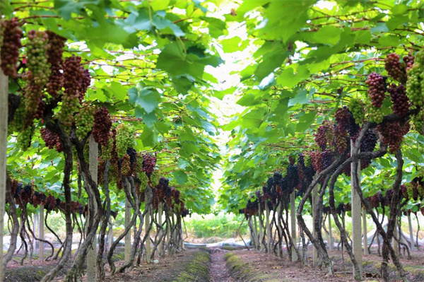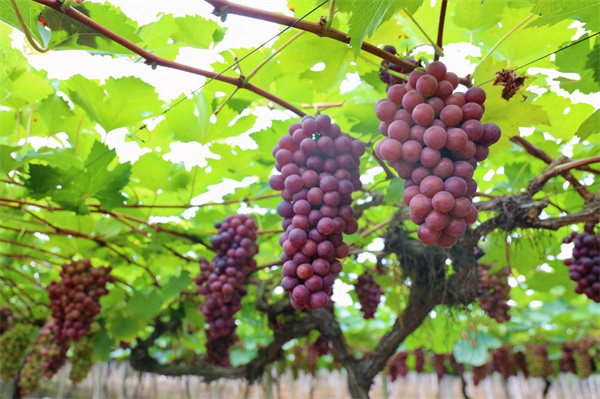 近日,青山鎮(zhèn)的葡萄園里熱鬧非凡,放眼望去,成片的葡萄架綿延如綠色海洋,飽滿圓潤的葡萄在藤蔓間低垂,紫的似瑪瑙,綠的如翡翠,在陽光照耀下晶瑩剔透,令人垂涎欲滴。