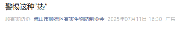 日前,佛山市順德區(qū)有害生物防制協(xié)會發(fā)布提醒: