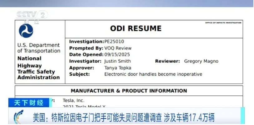 新聞多一點(diǎn)>>9月16日,多家媒體報(bào)道,美國(guó)相關(guān)機(jī)構(gòu)對(duì)部分特斯拉電動(dòng)汽車可能存在“電子門把手失靈”的問(wèn)題展開調(diào)查,涉及車輛約17.4萬(wàn)輛。