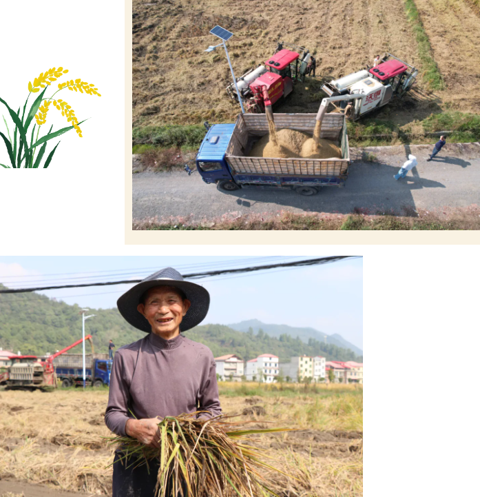 秋風(fēng)送爽,稻谷飄香。近日,栗水河洪東段沿岸的連片晚稻漸次成熟,翻涌起層層金色波浪。種糧大戶鐘新文正組織兩臺(tái)收割機(jī)開(kāi)足馬力、馳騁田間,所過(guò)之處,稻穗應(yīng)聲入倉(cāng),谷粒傾瀉如瀑;幾位白發(fā)老人則在收割后的稻田里,彎腰拾起散落的稻穗。機(jī)械轟鳴與人工忙碌交織,共同勾勒出一幅動(dòng)人的秋收畫卷。