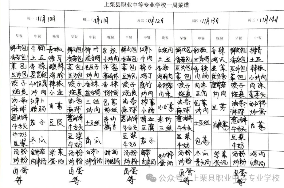 上栗縣職業(yè)中等專業(yè)學(xué)校一周食譜(11月10日-11月14日)