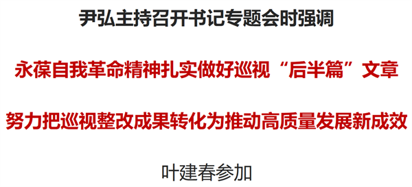 省委常委會召開會議 認(rèn)真學(xué)習(xí)貫徹習(xí)近平總書記重要講話重要指示精神 尹弘主持 12月13日,省委常委會召開會議,傳達(dá)學(xué)習(xí)習(xí)近平總書記近期重要講話重要指示和中央重要會議精神,研究我省貫徹落實意見,安排部署有關(guān)工作。省委書記尹弘主持會議。 會議強(qiáng)調(diào),要認(rèn)真學(xué)習(xí)貫徹習(xí)近平總書記在江澤民同志追悼大會上的悼詞精神,對標(biāo)對表黨的二十大作出的新部署新要求,聚焦“作示范、勇爭先”